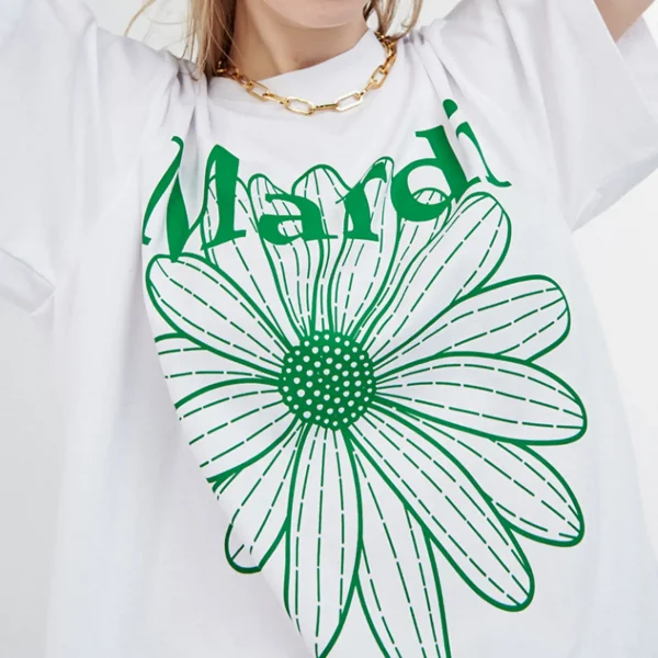 今すぐマルディ・メルクレディのグリーントレンドに参加して、韓流アイドルのこのFLOWER Tシャツで夏のファッションダイアリーを明るくすることを躊躇しないでください! お出かけの度に、緑の植物園へのファッショントリップです!