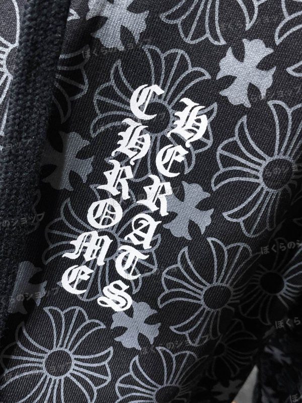 【黒/白】Chrome Hearts | クロムハーツ ★CH ジップアップパーカ 総柄 フルジップ パーカー フード付き 前開き ファスナー メンズ レディース スウェット 春着 秋着 カジュアル ブラック ホワイト