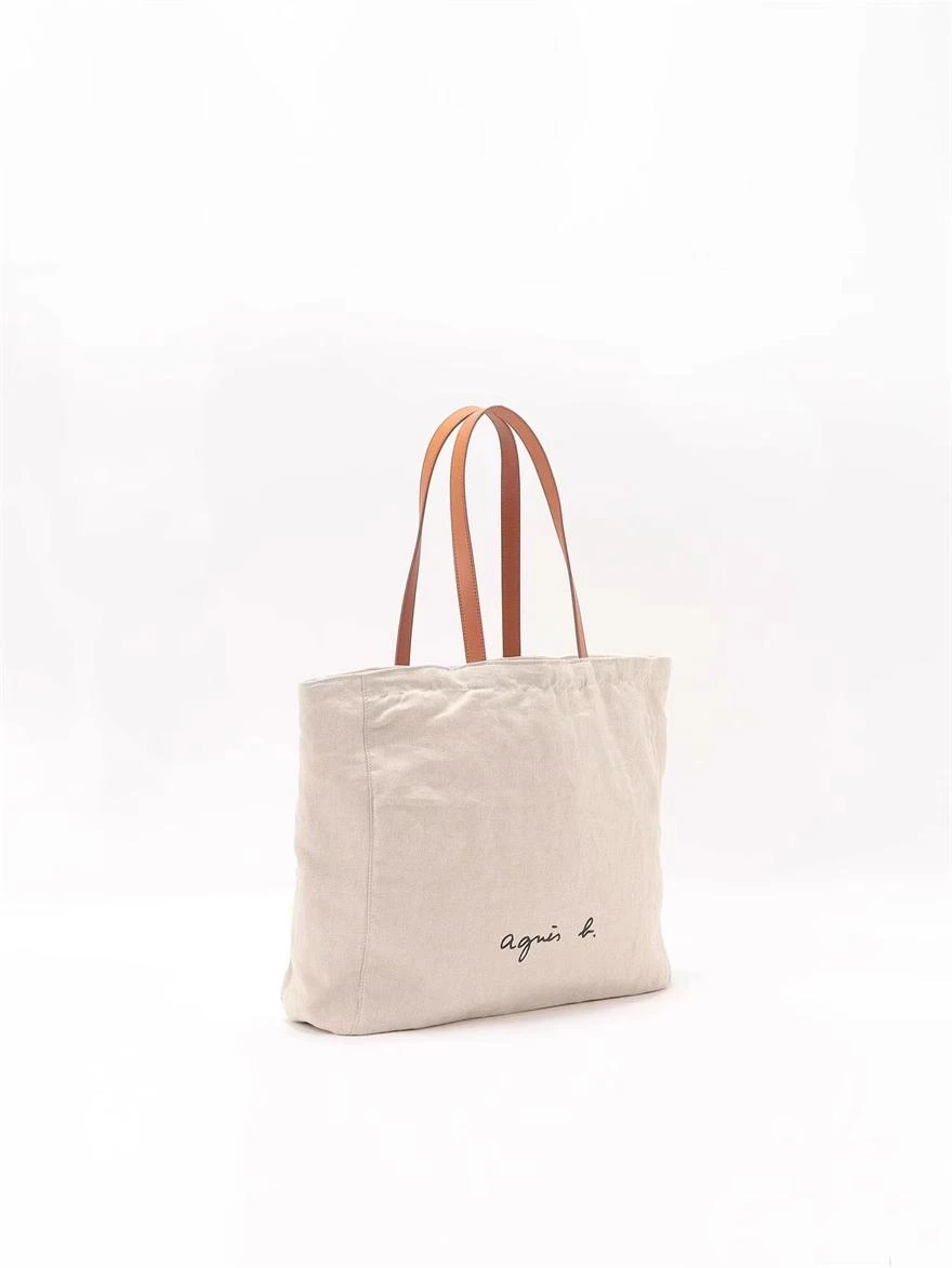 無地のファブリックにブランドロゴをデザインしたシンプルさがお気に入り。