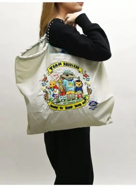 ボビーダズラーのデザイナーが描いたイラストをもとに刺繍されたエコバッグです。