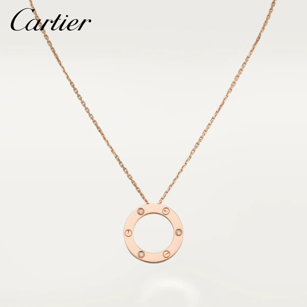 Love ネックレス、18Kピンクゴールド、ブリリアントカット ダイヤモンド3個(計0.07ct)、内径:16mm、チェーンの長さ:420mm