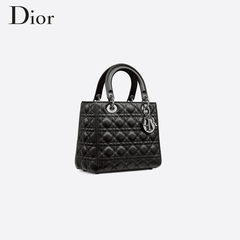 メゾンのコードを体現する「レディ ディオール」バッグ。タイムレスでありながら、その魅力を際立たせる洗練されたデザインが特徴です。ブラックのラムスキンに「カナージュ」ステッチを施すことで、極上のキルティングの質感を演出。同系色のスエードの裏地を配し、ルテニウムコーティングの“D.I.O.R.”エナメルチャームで、モダンで大胆なシルエットを一層引き立てました。取り外し可能な細身のレザー ショルダーストラップを備えており、ハンドバッグとしてはもちろん、ショルダーバッグやクロスボディバッグとしても使えるミディアムサイズのスタイルです。
