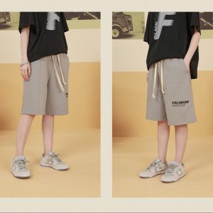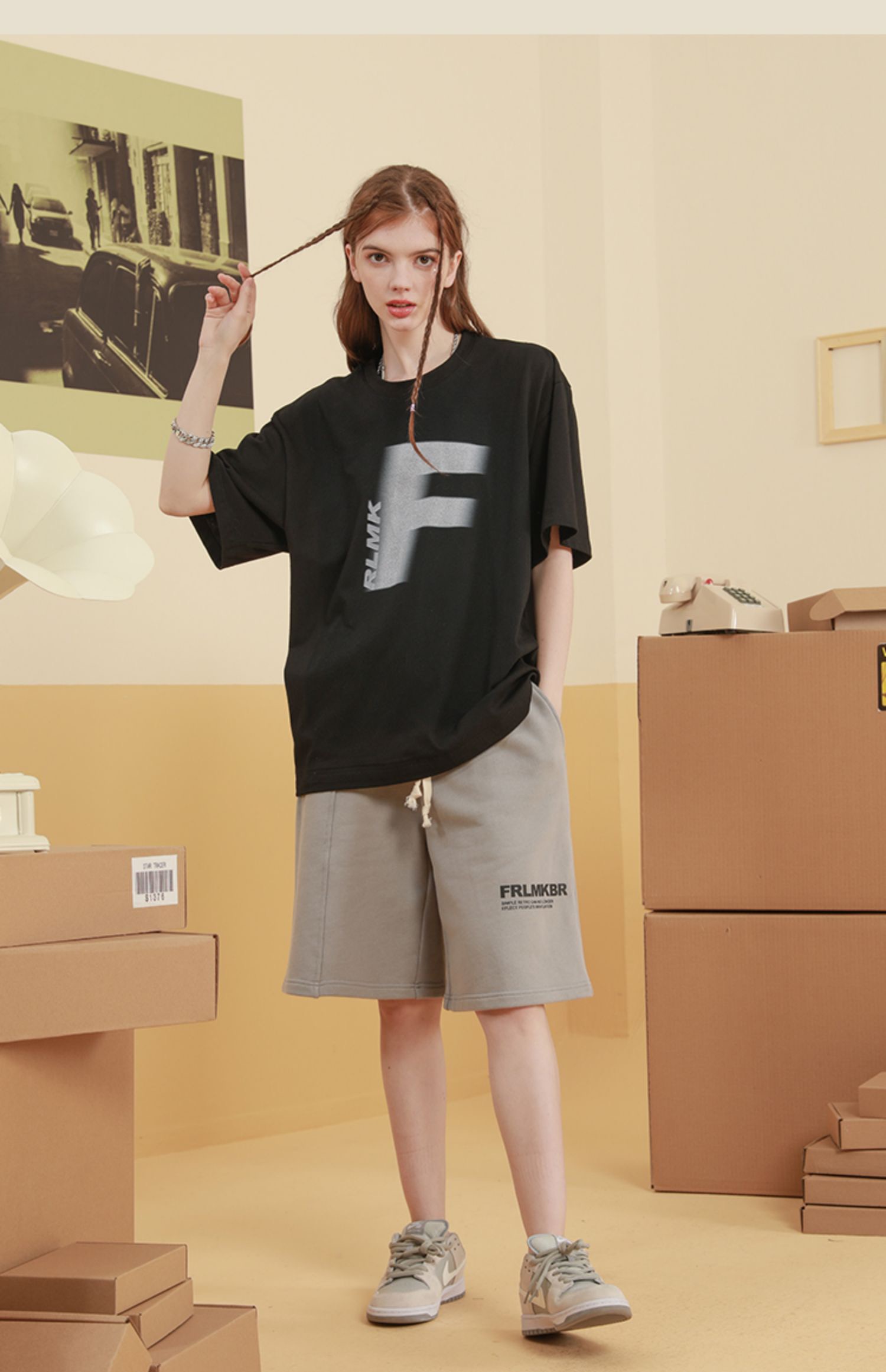 FRLMK-BRAND-パンツ-半ズボン-ロゴ-ジャージ-ペアルック-ストリート-スポーツ-ゆったり感-オーバーサイズ-ヒップホップスタイル-男女兼用-グレー-ブラック-