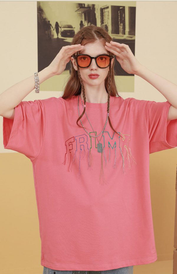 FRLMK-BRAND-Tシャツ-半袖-刺繍-ブランドロゴ-ストリート-スポーツ-クルーネック-オーバーサイズ-ヒップホップスタイル-男女兼用-ブラック-ホワイト-ピンク