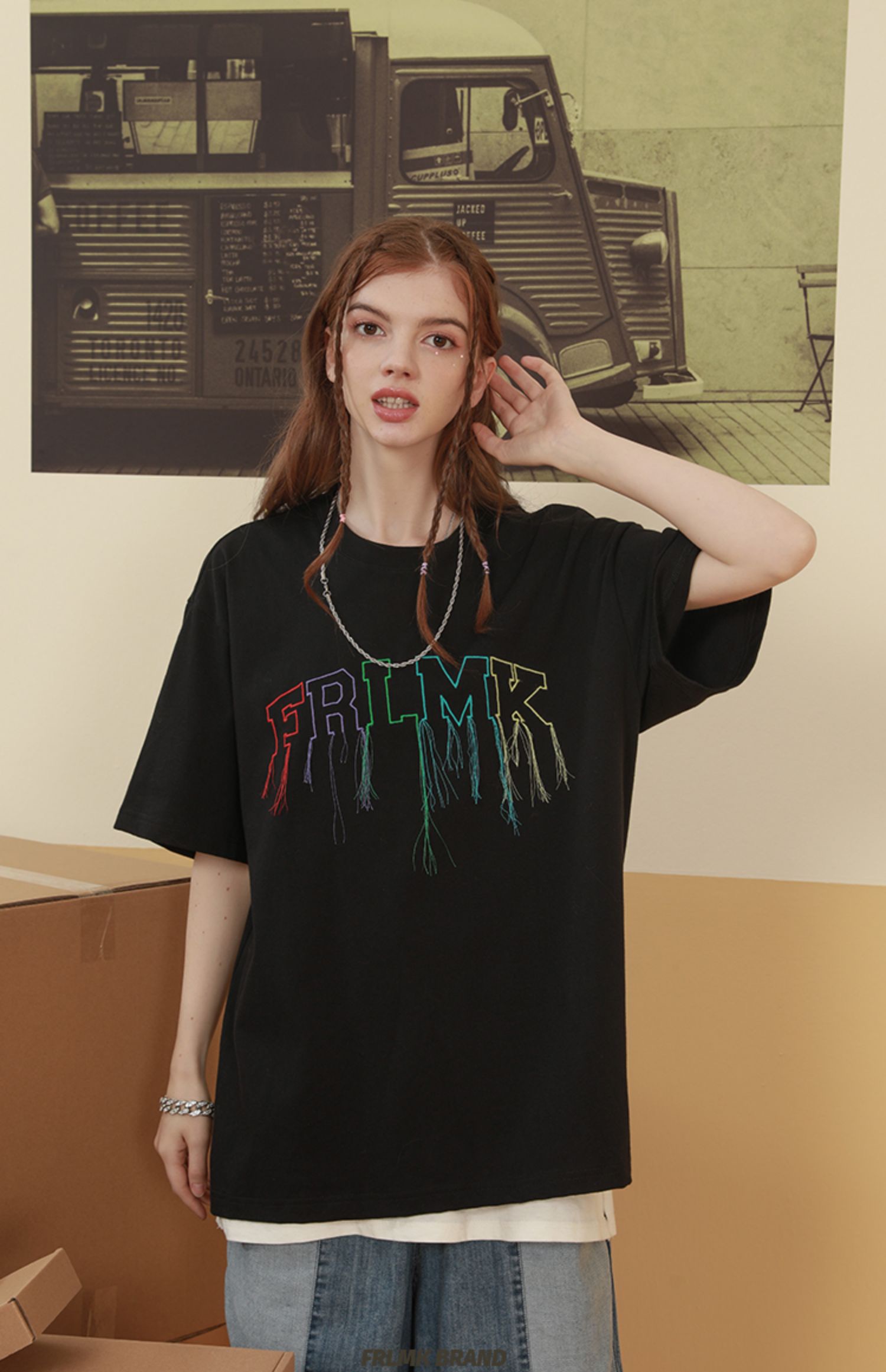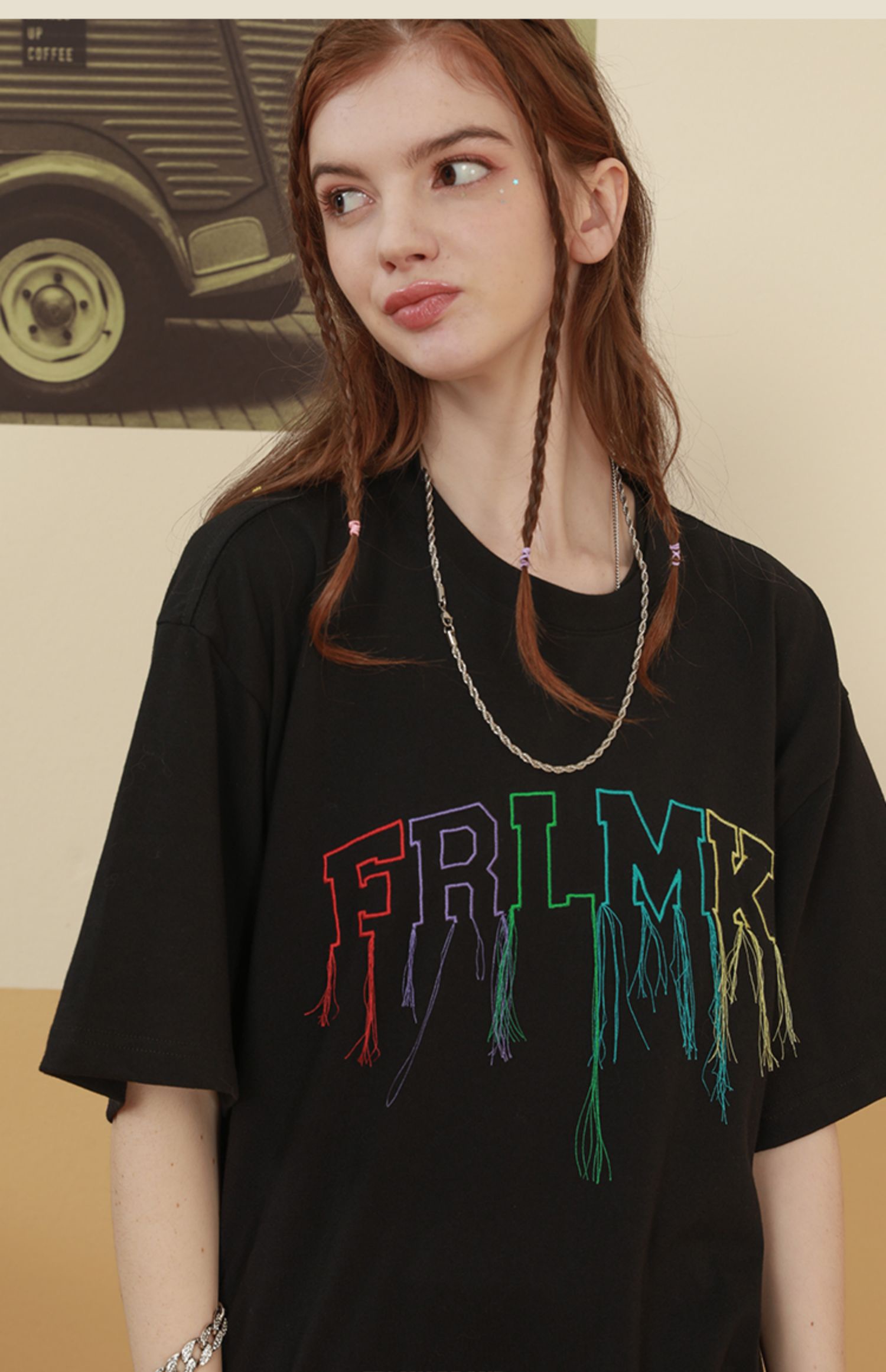 FRLMK BRAND Tシャツ 半袖 刺繍 オーバーサイズ 男女兼用 ブラック ホワイト ピンク