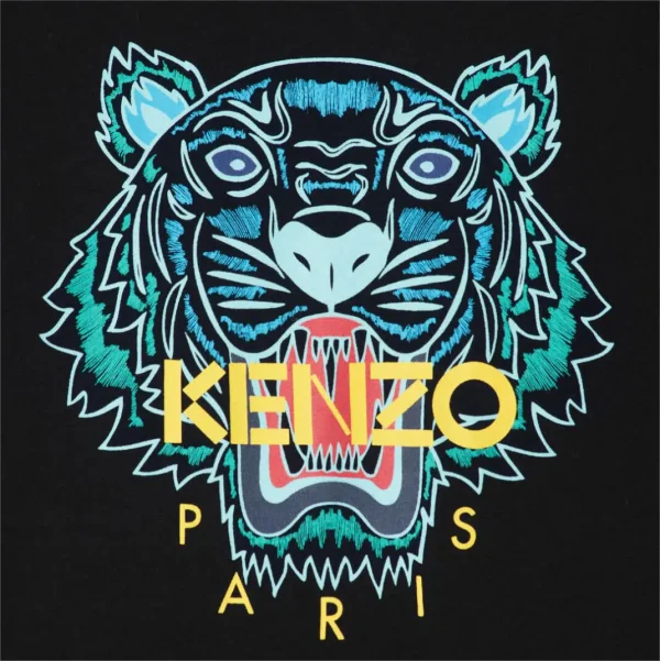 ケンゾーコットンのジャージーTシャツ、リラックスしたフィット感。フロントに象徴的なトラのプリントとロゴが特徴です。