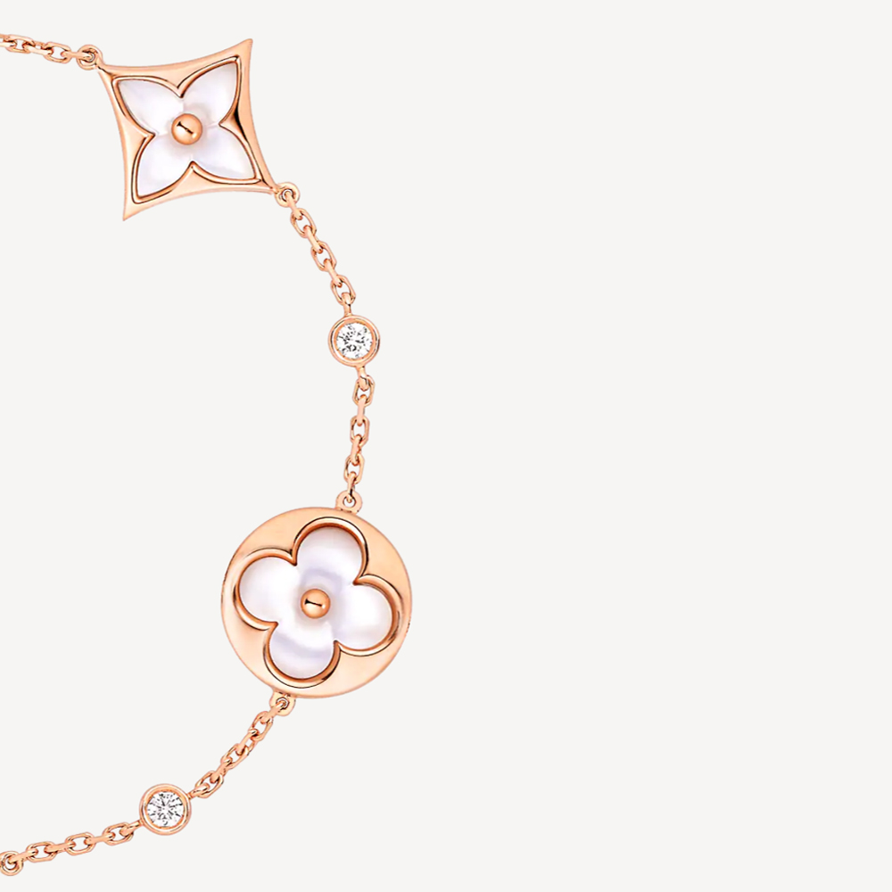 1896年に創業者ルイ・ヴィトンの息子、ジョルジュ・ヴィトンがデザインしたモノグラム・フラワー モチーフを祝して誕生した「カラー ブロッサムBB」。フラワー型に彫刻した小ぶりなホワイト マザー・オブ・パールに組み合わせたピンクゴールドが、ダイヤモンドによって美しく際立ちます。数ヶ月におよぶ手作業を経て完成した繊細な曲線と輝きが魅力の一品です。
