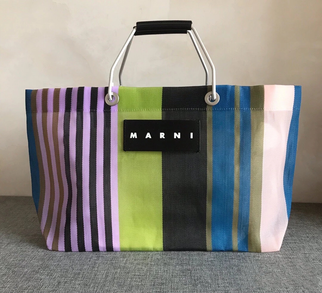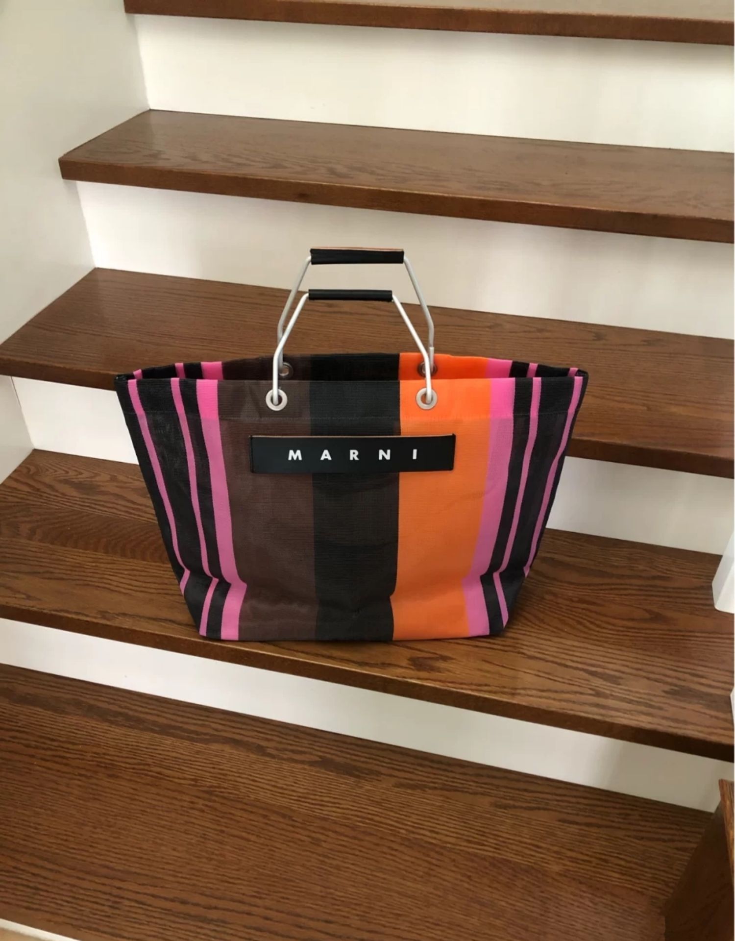 サイズはもちろん、マチもあってしっかりしているのに”MARNI”のロゴもしっかり入っているので、イロチ買いする人も多いマルニマーケットバッグ。どんなコーデも一気にグレードアップさせることがきます。