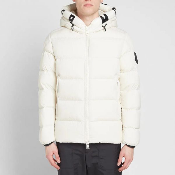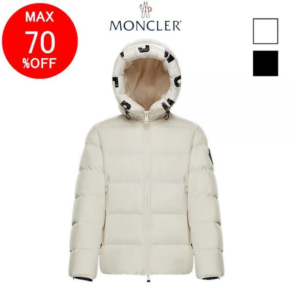 フードにラッカーナイロントリミングにMonclerレタリングのプリント