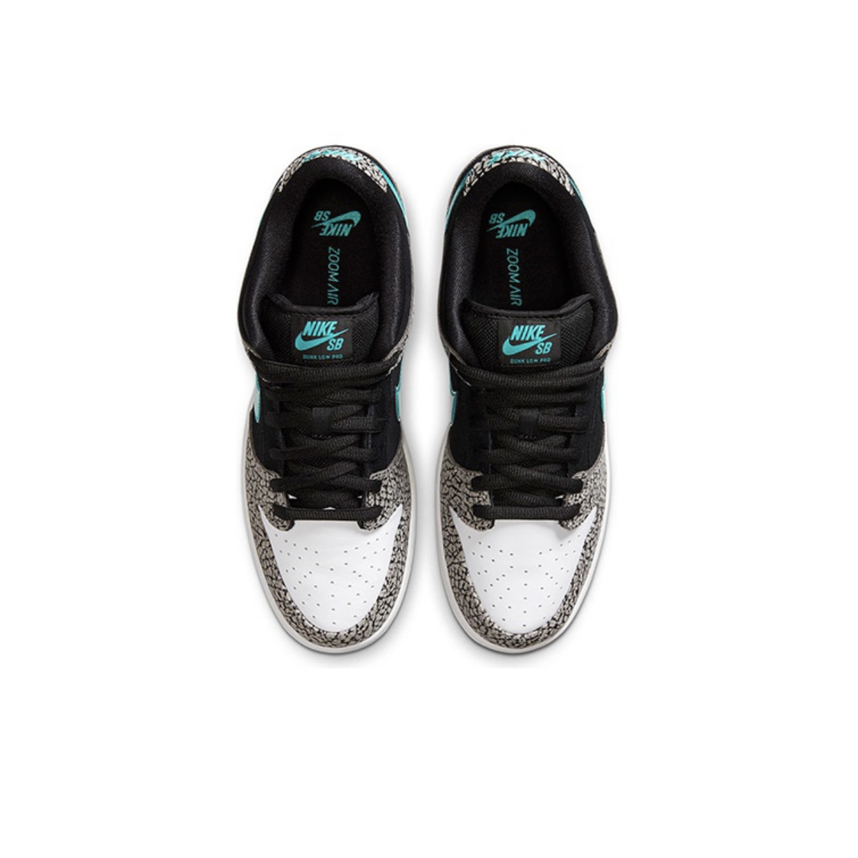 アッパーをホワイトレザーで構築し、エレファント柄、ブラックスエードでオーバーレイ。サイドにはビビットなライトブルーのスウッシュを配置。まさに”ELEPHANT”(エレファント)を思わせるDUNK(ダンク)に仕上がっている。