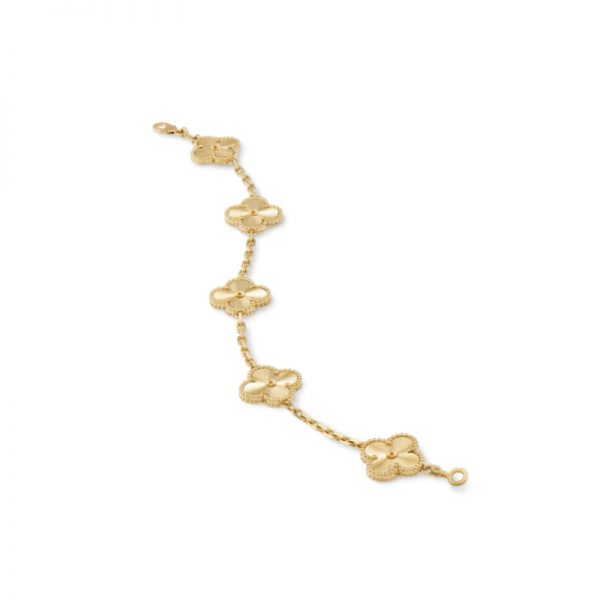 1968年に初めて誕生したアルハンブラの特徴を受け継ぎ、ヴァン クリーフ&アーペルならではの独創性と時を超えるエレガンスを湛えるヴィンテージ アルハンブラ。ゴールドビーズによる縁取りが美しい、四つ葉のクローバーに着想を得た幸運のシンボルです。